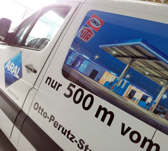Tankstelle an der Messe München - Fahrzeugbeschriftung